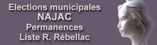 "Najac Autrement, l'Equipe Nouvelle", liste de Raymond Rébellac, tiendra des permanences de campagne à la salle de la cantine (rez-de-chaussée de la mairie de Najac), mardi 11, mercredi 12 et jeudi 13, de 18h à 20h. Les Najacois désireux de rencontrer les membres de l'équipe seront les bienvenus.
